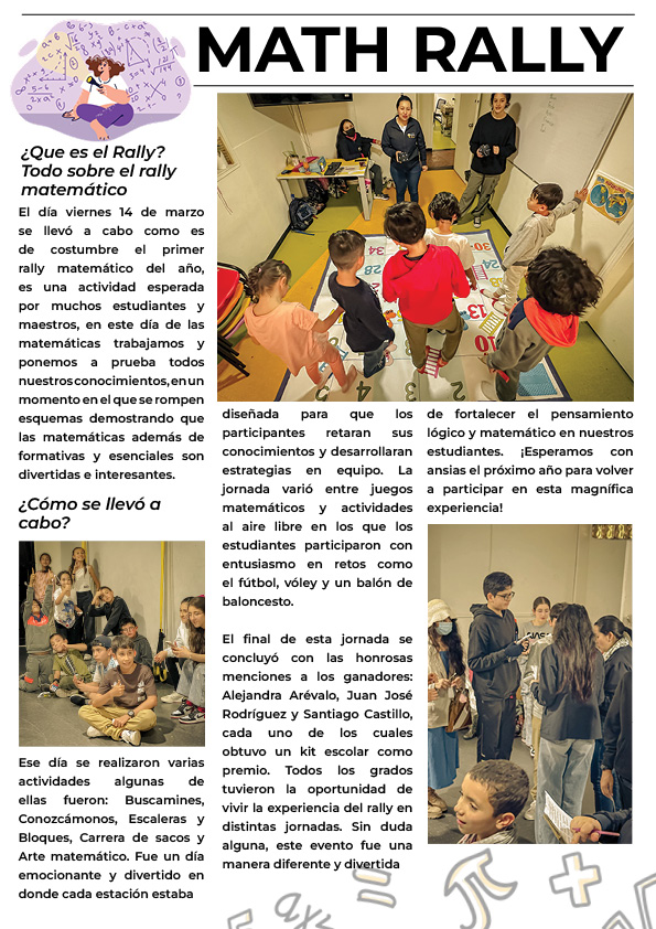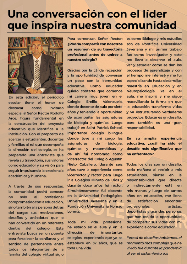 En esta nueva edición encontrarás artículos escritos, crónicas sobre actividades destacadas, reflexiones y mucho más. Es un espacio que celebra la voz de nuestros estudiantes y muestra el pensamiento crítico, la creatividad y el compromiso con el entorno que promovemos desde nuestro modelo educativo.