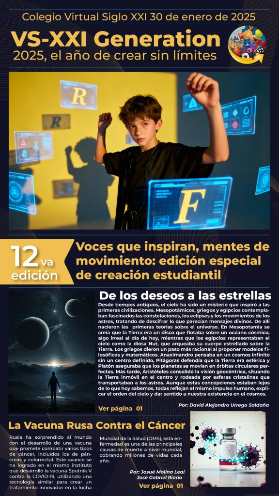 Nuestro periódico escolar VS-XXI presenta una nueva edición construida íntegramente por nuestros estudiantes y docentes. Crónicas, entrevistas, análisis y contenido hecho con mirada crítica y creativa. Una muestra del talento comunicativo que crece en nuestro colegio. Te invitamos a leerlo y celebrar el poder de las ideas escritas por nuestra comunidad.